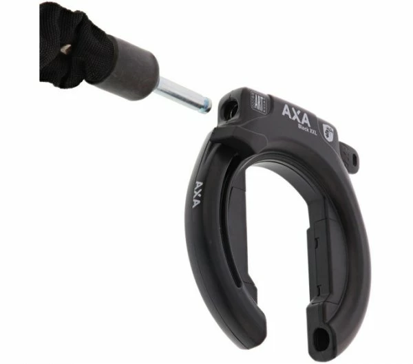 Das AXA Block XXL ist ein hochwertiges Rahmenschloss und bietet die Möglichkeit eine Plug-In-Kette in die Seite des Schlosses zu stecken und damit Ihr Fahrrad mit einem festen Objekt zu verbinden.