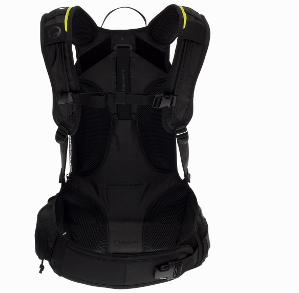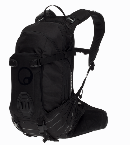 Die beweglichen, selbst justierenden Ergon-Schultergurte folgen optimal der Körperform jedes Fahrers. Eine spezielle Lastkompression garantiert die stabile Anbindung des Rucksacks auch am unteren Rücken. Mit D-Ringen aus Aluminium ist die Konstruktion besonders robust.