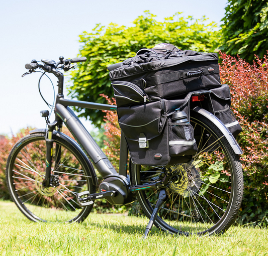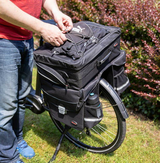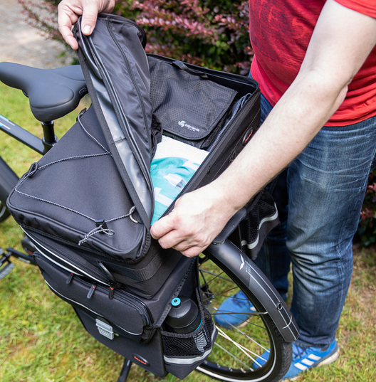 – Befestigung: Klemmen auf dem Gepäckträger + Befestigungsschienen für Gepäckträgerstreben