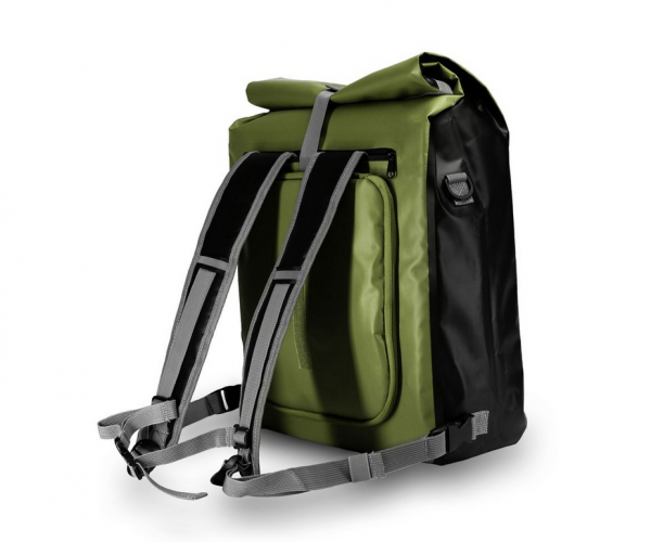 Mit unserem Klicksystem funktionierst du unsere Tasche mit wenigen Handgriffen zum Rucksack oder zur Umhängetasche um. Der breite Schultergurt und die ergonomischen Rucksackträger sind nach der Umrüstung trocken und sauber in einem wasserdichten Fach mit wasserdichtem Reißverschluss verstaut.