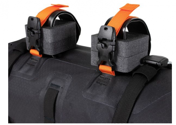 auch die Anbringung an Carbonlenkern ist möglich. Eine Kunststoffversteifung im Inneren des Handlebar-Packs und eine Fixierung