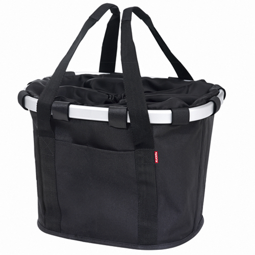 Kooperation zweier starker Marken. Die schicke Textiltasche von Reisenthel mit KLICKfix Kupplung am markanten Aluminium Rahmen. Auch ohne Fahrrad glänzt der Bikebasket als flotter Begleiter in der City, der so manche Handtasche aus dem Rennen wirft.