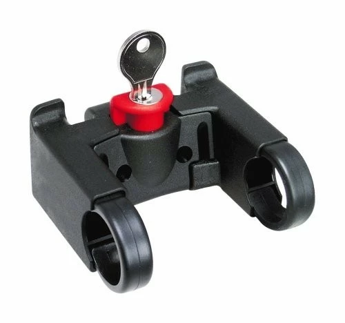 Der bekannte KLICKfix-Lenkerdapter mit Sicherheitsschloß. Ein hochwertiges Metallschloß ist in die rote Taste fest integriert und sperrt zuverlässig den Auslösemechanismus. So gesichert kann der Einkaufskorb auch mal am Rad bleiben. Auch bei schwerem Zubehör sitzt der Adapter durch die patentierte Seilabspannung absolut verdrehsicher und fest am Lenker. Der Adapter läßt sich an die unterschiedlichen Bedingungen am Rad anpassen. Verschiedene Distanzstücke, Montagesockel und Schellengrößen, ermöglichen die Montage an fast allen Rädern.
