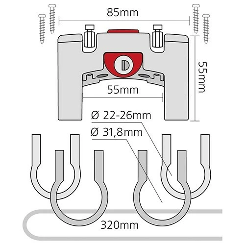 KLICKfix Lenkeradapter mit Schloss in Universalausführung mit je zwei Schellen für Standard-Lenker (22 – 26 mm