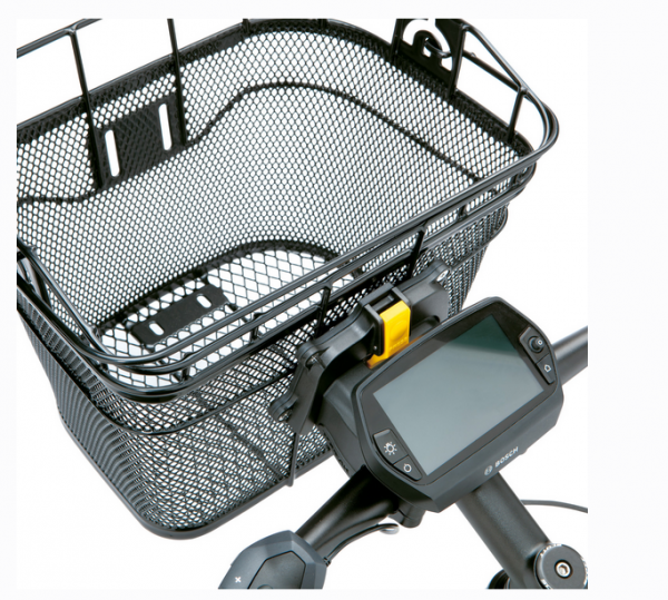 Robuster Metallkorb zur Lenkermontage, ideal geeignet für Shopping Trips, Ausflüge und Besorgungen. Neue QuickClick™ Lenkerhalterung (Fixer 3e) ermöglicht eine leichte Befestigung und Demontage auch an eBikes.